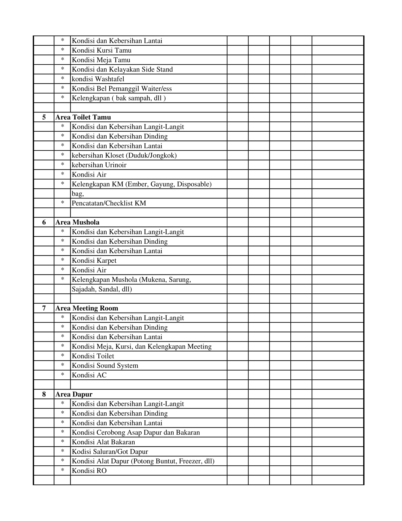 2. Checklist Kebersihan ;