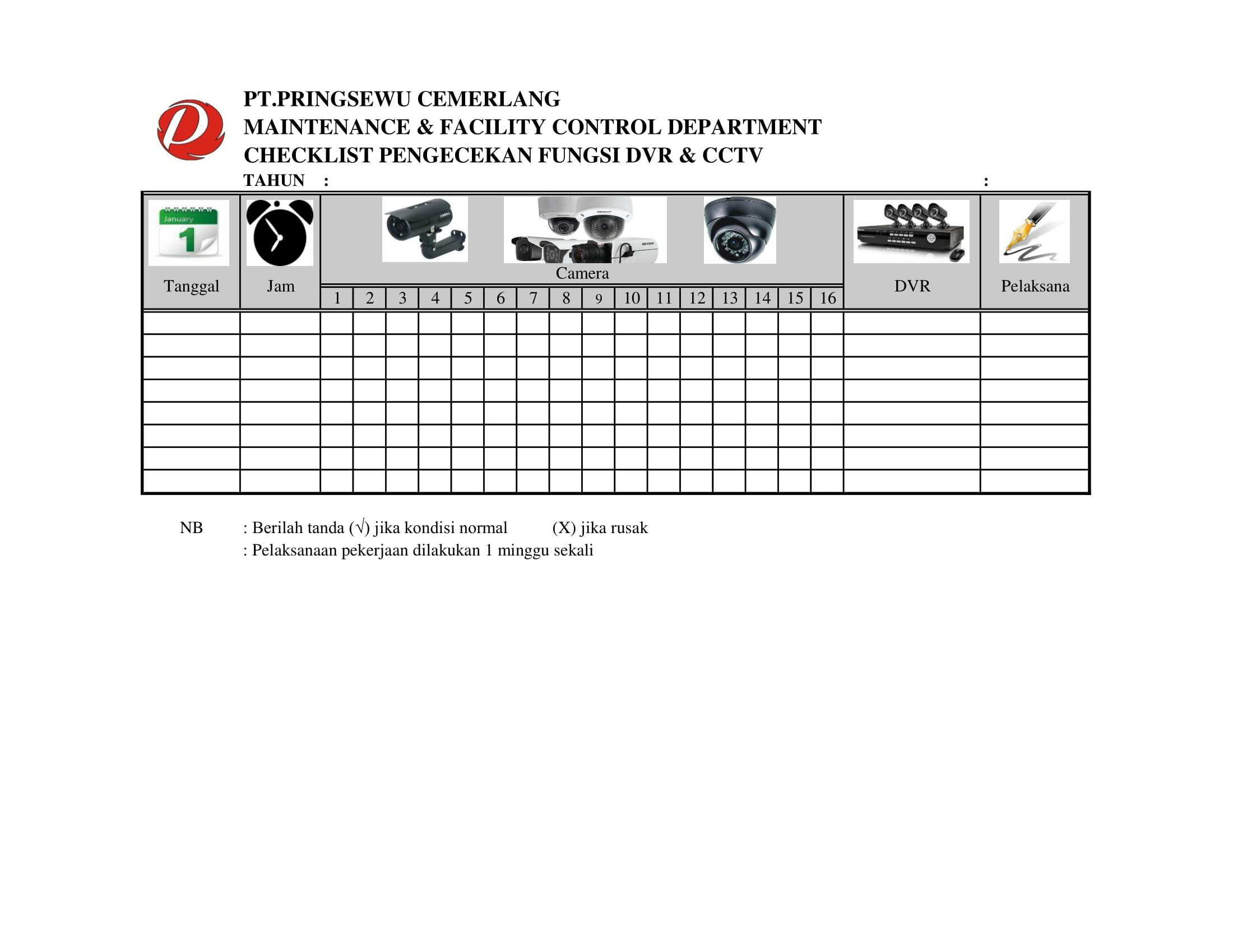 d. Checklist Pengecekan DVR dan CCTV
