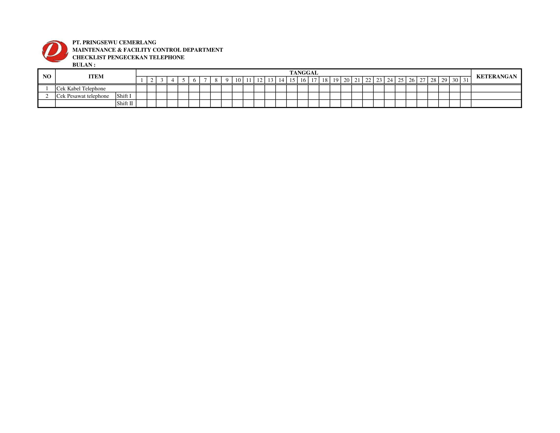 c. Checklist Pengecekan Telepon