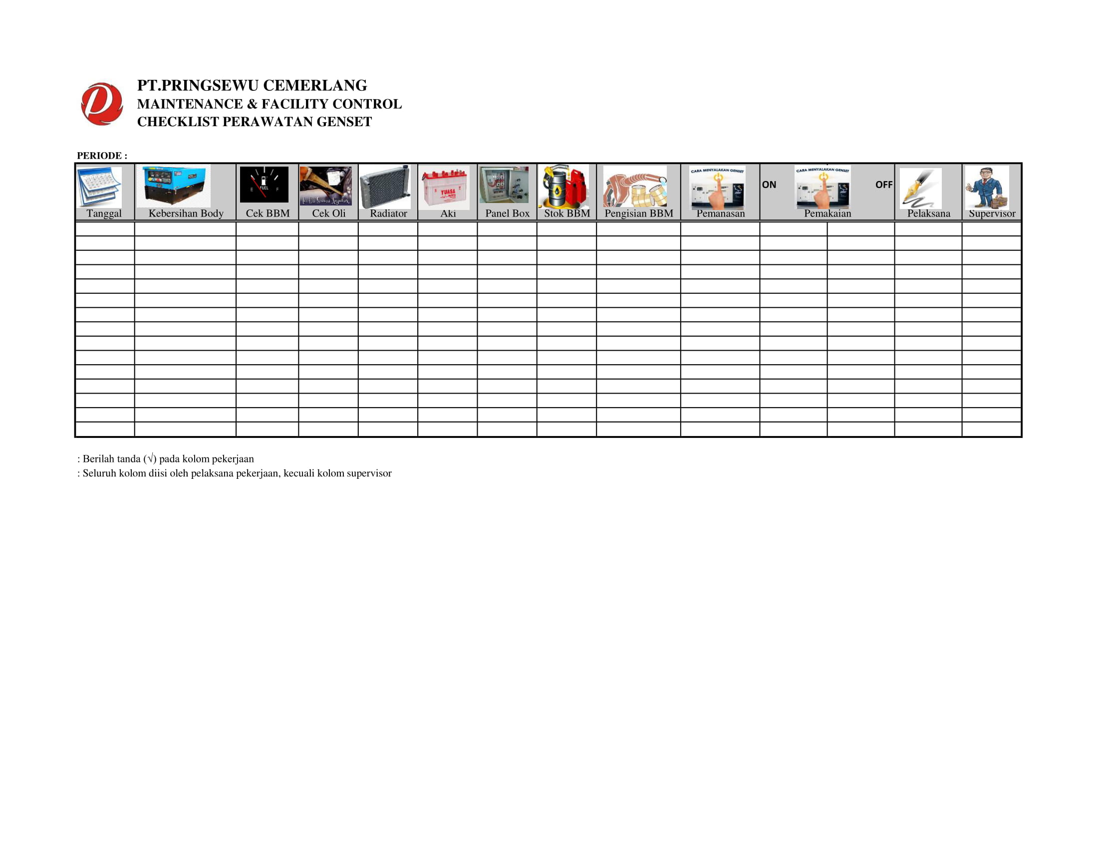 b. Checklist Perawatan Genzet