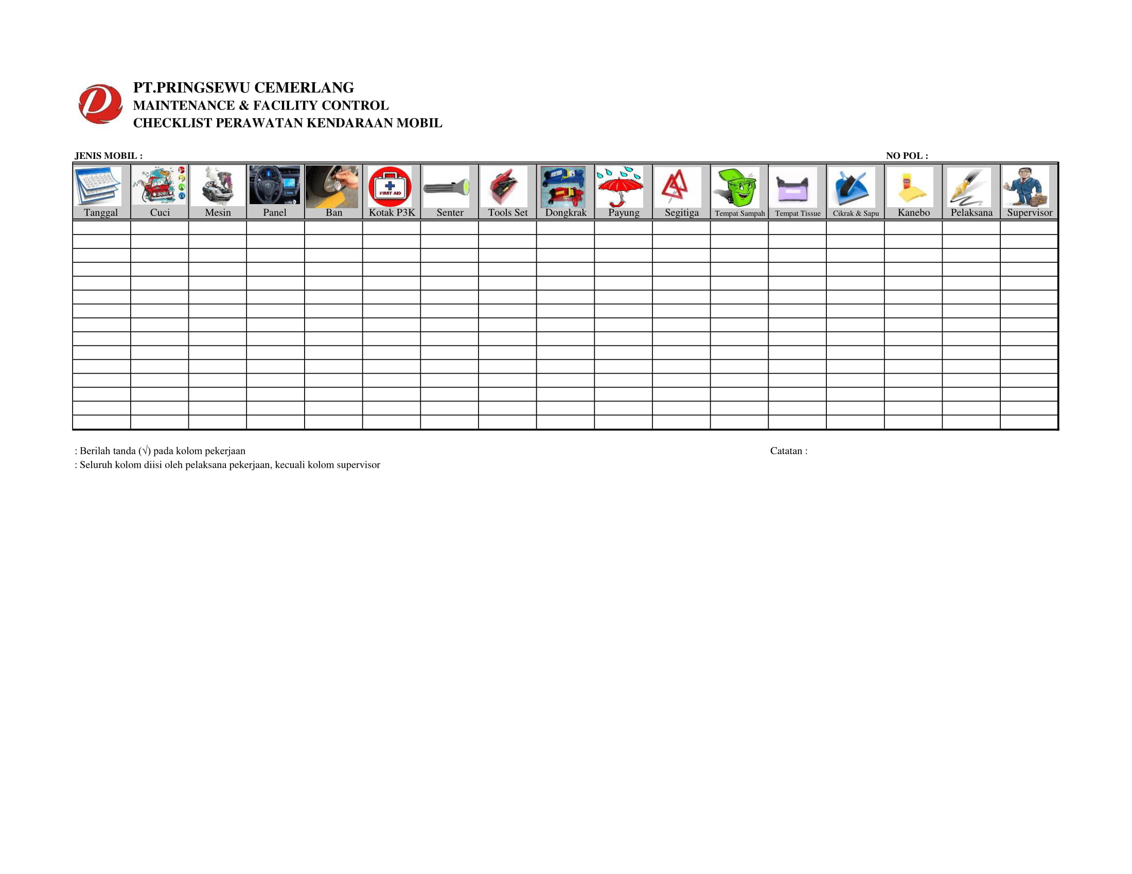 a. Checklist Perawatan Kendaraan Mobil